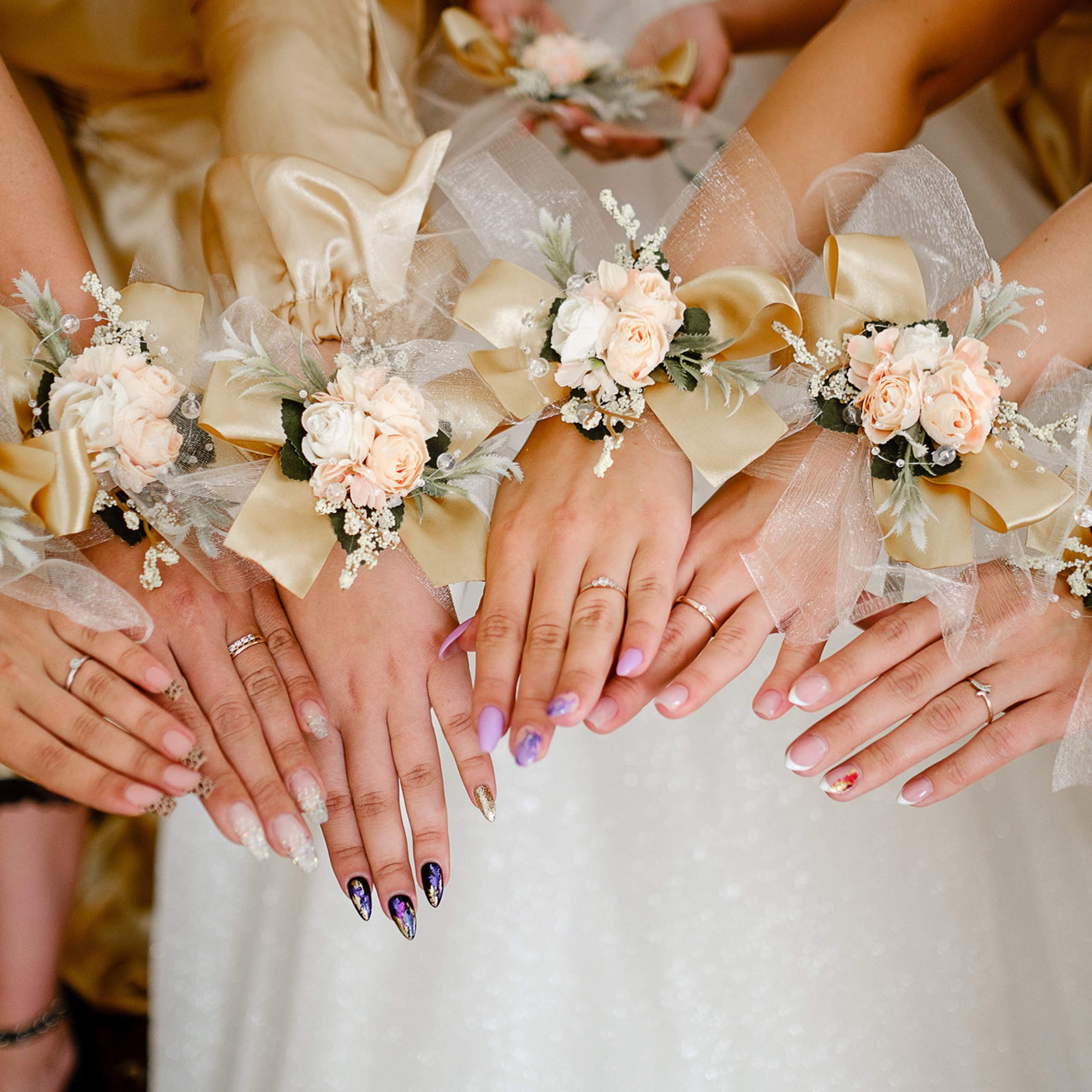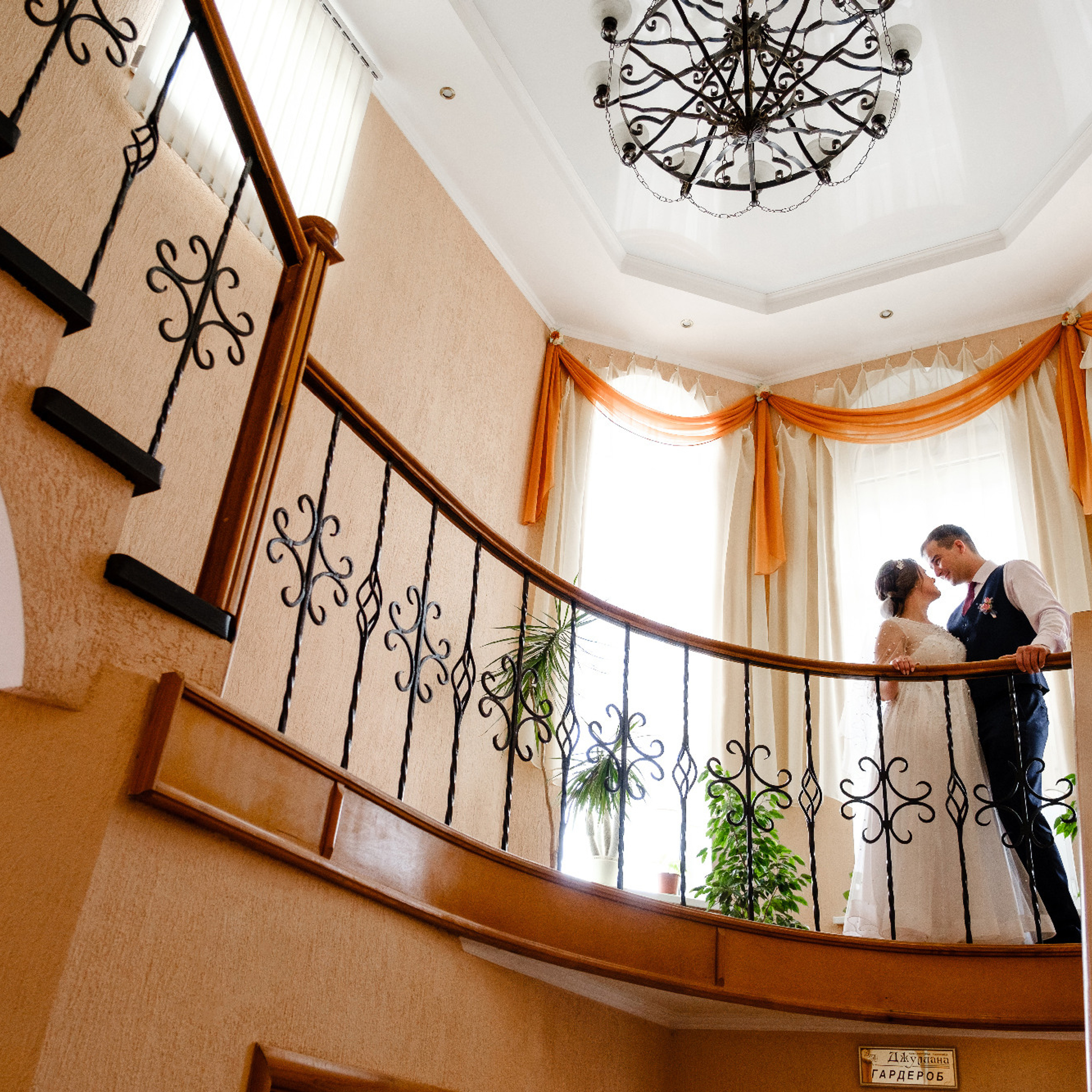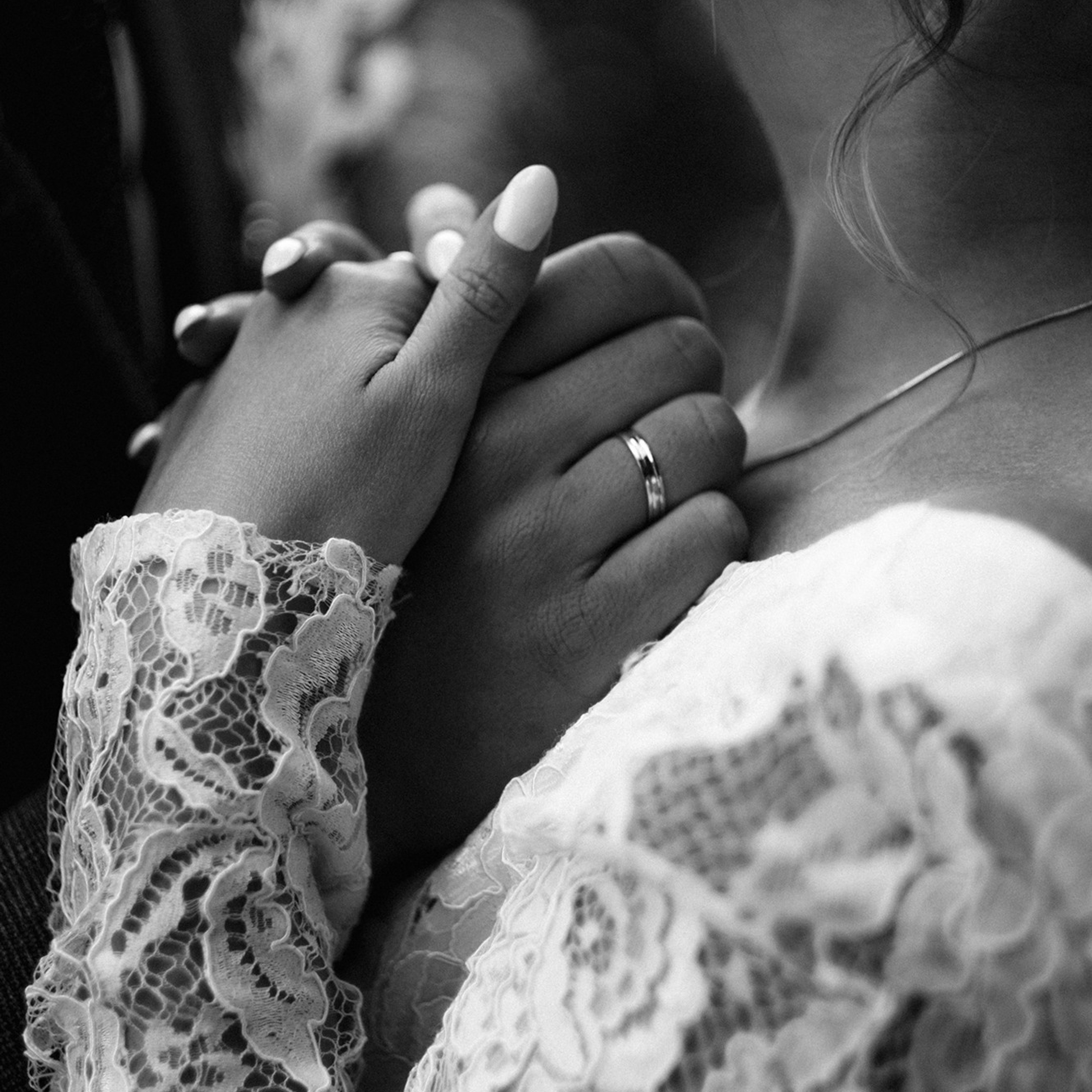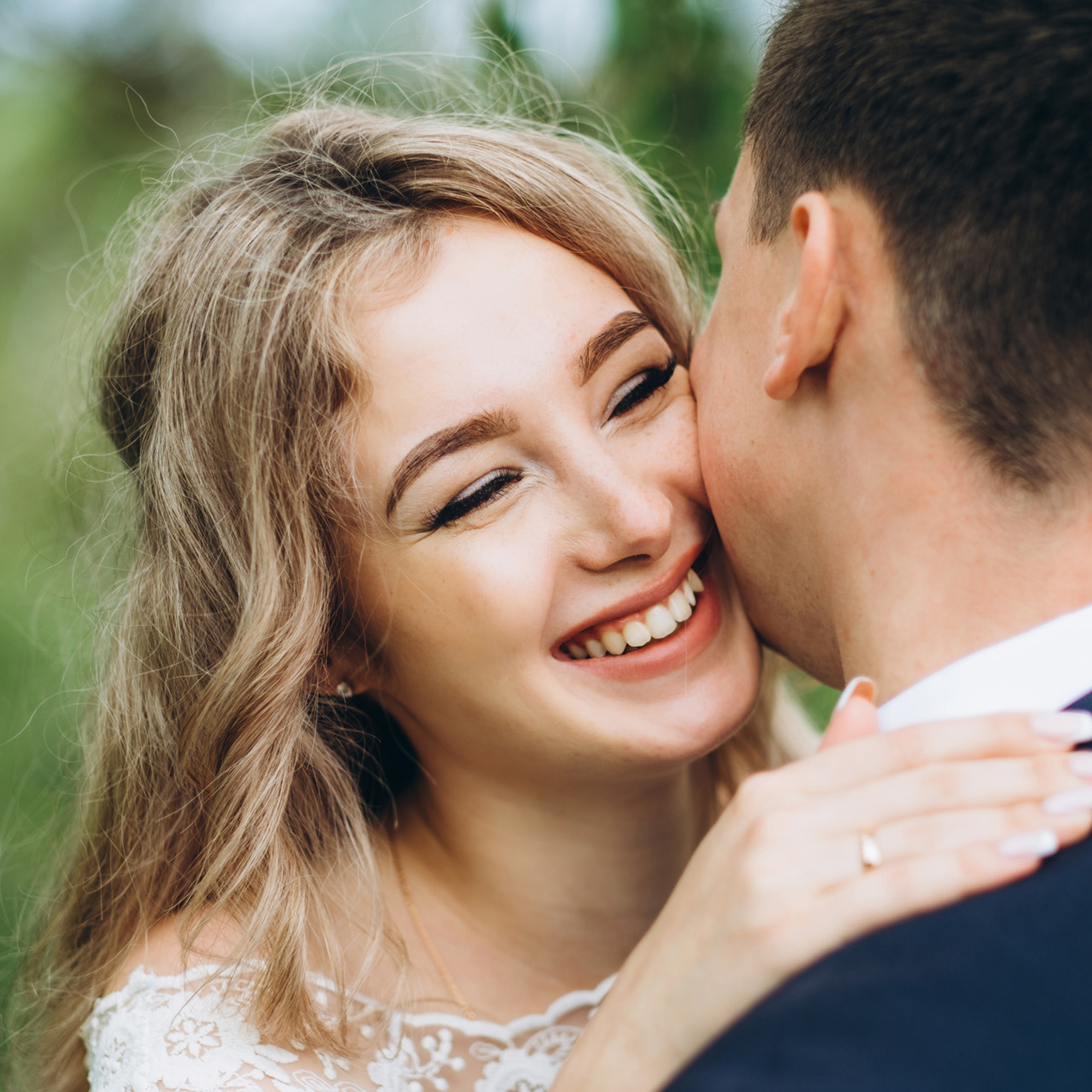Фотосъёмка свадебной прогулки в сосновом лесу